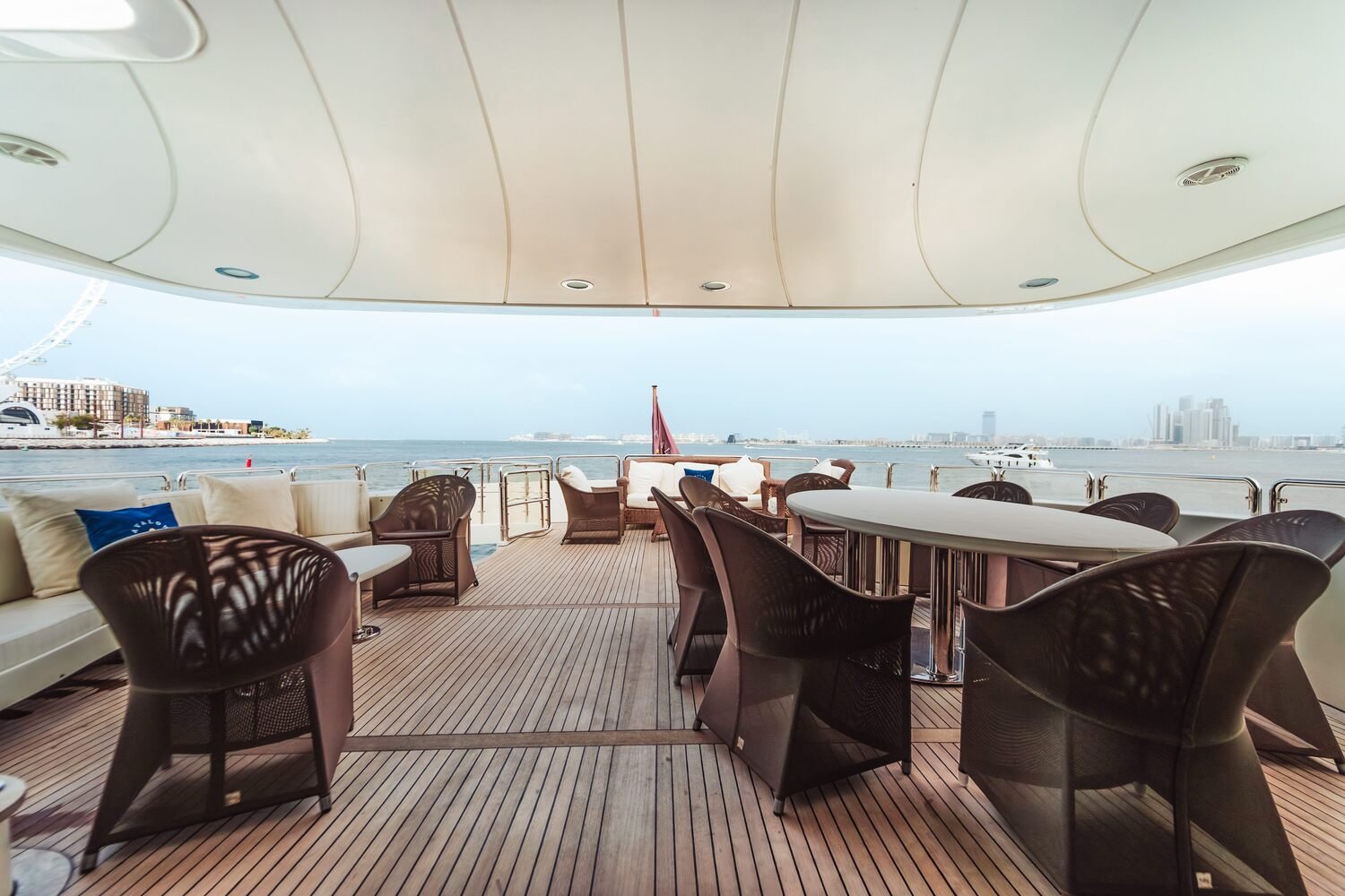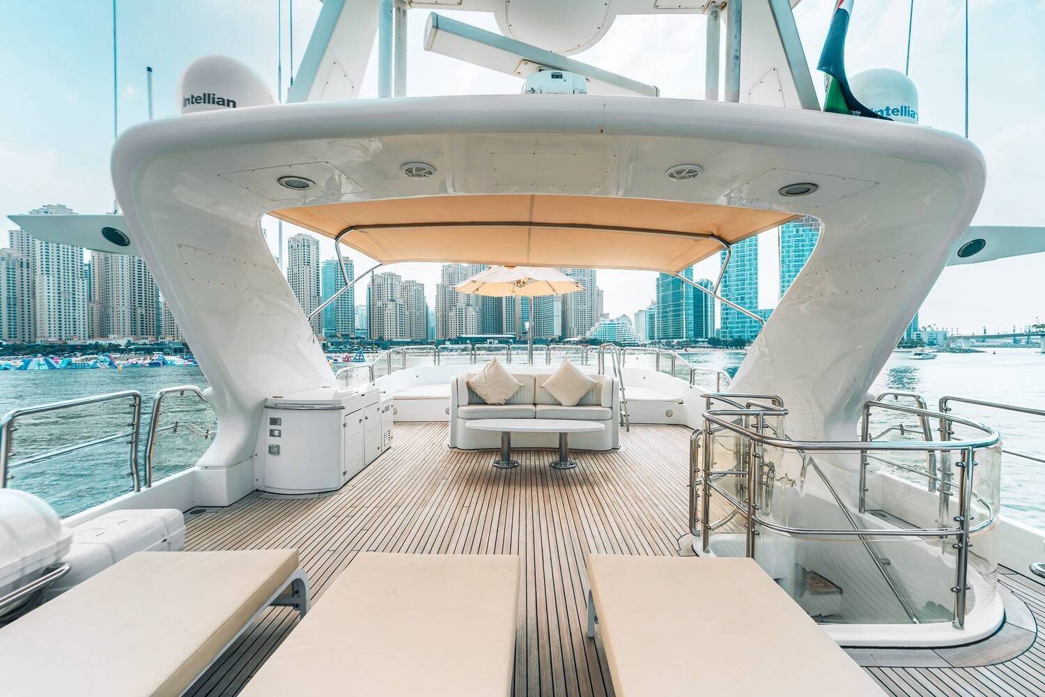 To secure your preferred yacht and date, we recommend booking 1–3 months in advance. The best season for yacht trips in Dubai is from October to April, with pleasant weather. Bring swimwear, sunscreen, a hat, sunglasses, and light clothes. In the winter months, a jacket or hoodie is also recommended.
