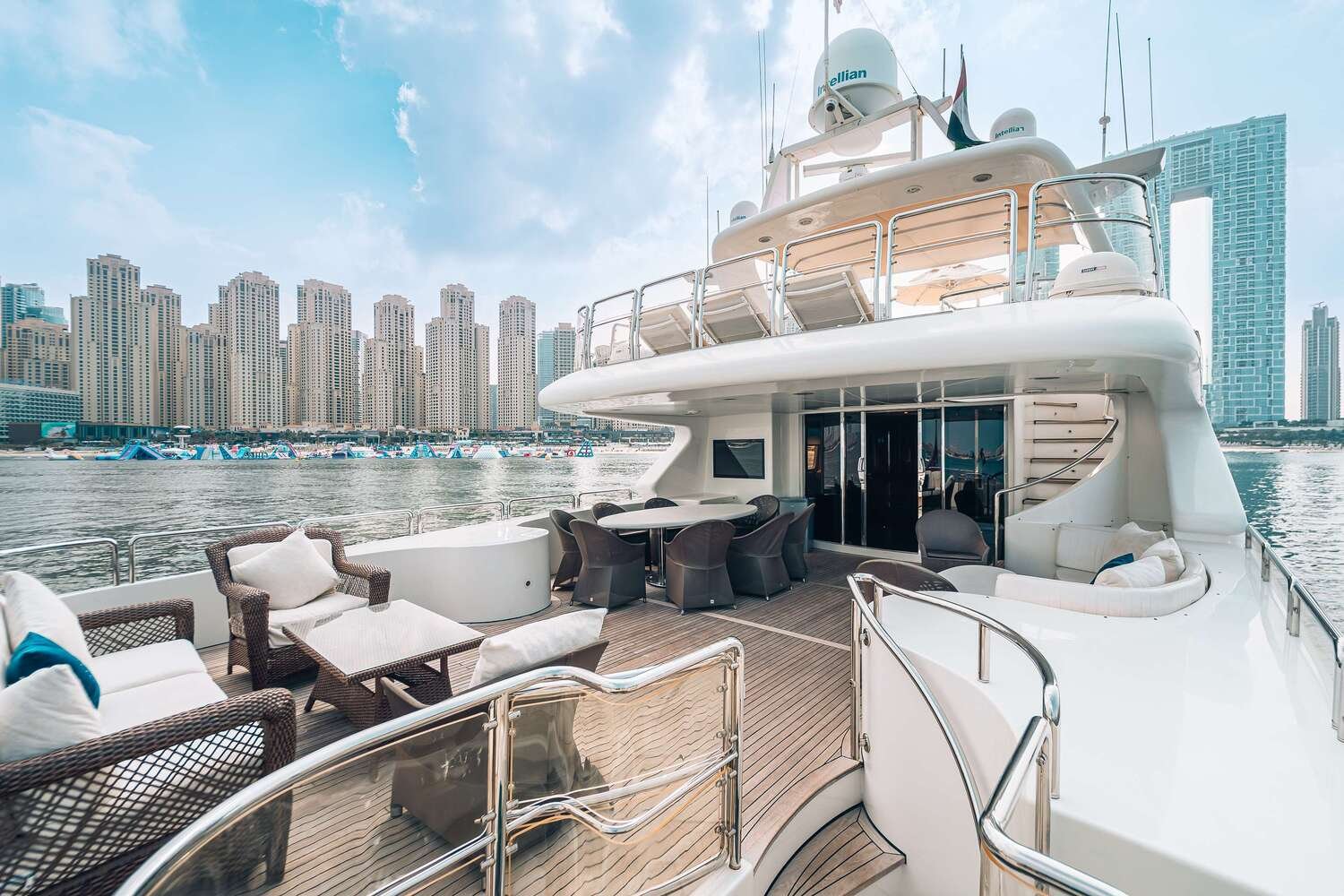 Our standard routes include Dubai Marina, JBR, Palm Jumeirah, Atlantis The Palm, Burj Al Arab, and open-sea cruises. Routes can be customized to include swimming stops, fishing, or sightseeing requests.