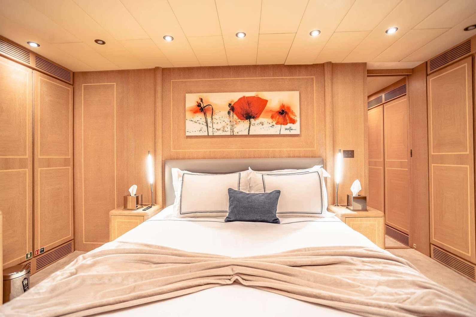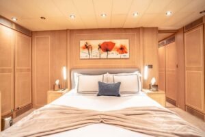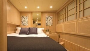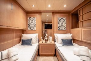 The Lady Maia 108 ft accommodates up to 20 guests in style, featuring 3 spacious cabins, including a magnificent master suite. Its expansive lounges, open decks, and sophisticated décor create an atmosphere of comfort and indulgence for every journey.